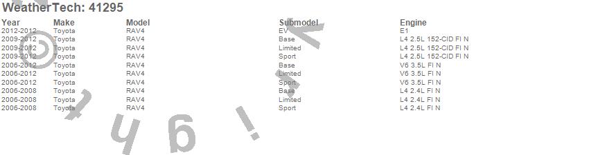 Below is an abbreviated list of applications for the Cargo Liner.RAV4, Toyota, 2012, 2011, 2010, 2009, 2008, 2007, 2006