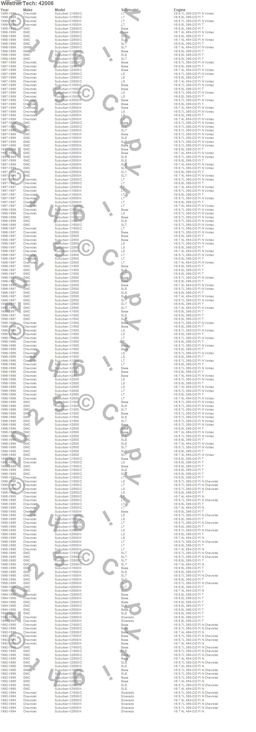 Below is an abbreviated list of applications for the Cargo Liner.C1500 Suburban, C2500 Suburban, K1500 Suburban, K2500 Suburban, Chevrolet, GMC, 1999, 1998, 1997, 1996, 1995, 1994, 1993, 1992