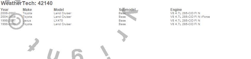 Below is an abbreviated list of applications for the Cargo Liner.Land Cruiser, LX470, Lexus, Toyota, 2007, 2006, 2005, 2004, 2003, 2002, 2001, 2000, 1999, 1998