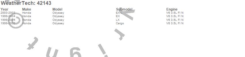Below is an abbreviated list of applications for the Cargo Liner.Odyssey, Honda, 2004, 2003, 2002, 2001, 2000, 1999