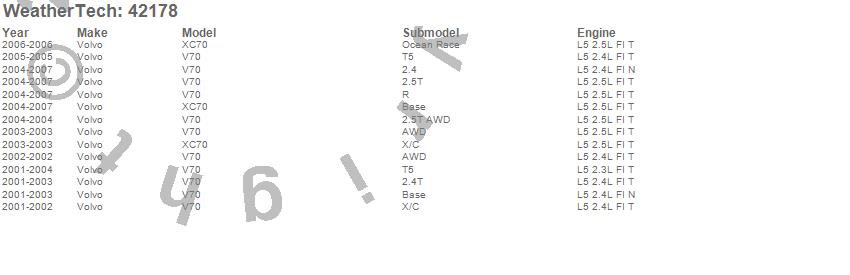 Below is an abbreviated list of applications for the Cargo Liner.V70, XC70, Volvo, 2007, 2006, 2005, 2004, 2003, 2002, 2001