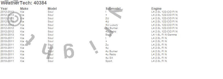 Below is an abbreviated list of applications for the Cargo Liner.Soul, Kia, 2013, 2012, 2011, 2010