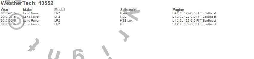 Below is an abbreviated list of applications for the Cargo Liner.LR2, Land Rover, 2015, 2014, 2013