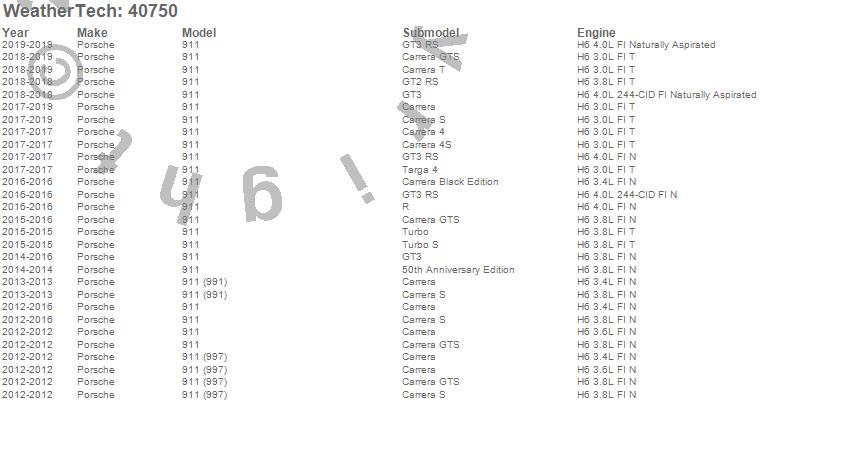 Below is an abbreviated list of applications for the Cargo Liner.911, Porsche, 2019, 2018, 2017, 2016, 2015, 2014, 2013, 2012