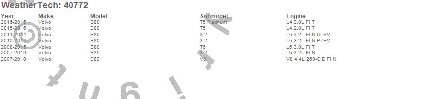 Below is an abbreviated list of applications for the Cargo Liner.S80, Volvo, 2016, 2015, 2014, 2013, 2012, 2011, 2010, 2009, 2008, 2007