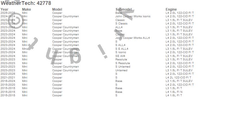 Below is an abbreviated list of applications for the Cargo Liner.Cooper, Cooper Countryman, Mini, 2026, 2025, 2024, 2023, 2022, 2021, 2020, 2019, 2018, 2017, 2016, 2015