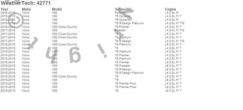 Below is an abbreviated list of applications for the Cargo Liner.V60, V60 Cross Country, Volvo, 2018, 2017, 2016, 2015