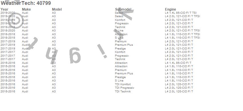 Below is an abbreviated list of applications for the Cargo Liner.A3, A3 Quattro, Audi, 2020, 2019, 2018, 2017, 2016, 2015