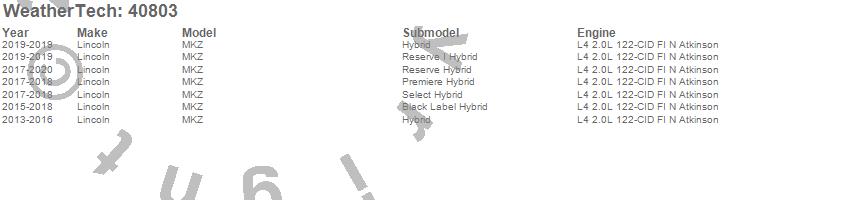 Below is an abbreviated list of applications for the Cargo Liner.MKZ, Lincoln, 2020, 2019, 2018, 2017, 2016, 2015, 2014, 2013