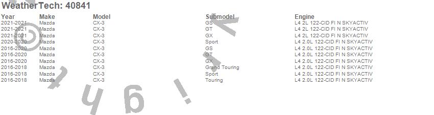 Below is an abbreviated list of applications for the Cargo Liner.CX-3, Mazda, 2021, 2020, 2019, 2018, 2017, 2016