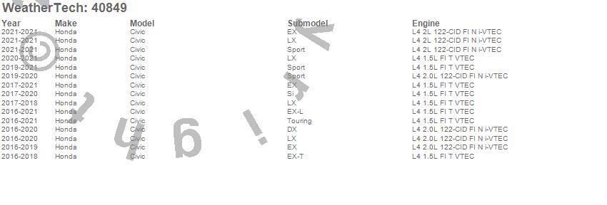 Below is an abbreviated list of applications for the Cargo Liner.Civic, Honda, 2021, 2020, 2019, 2018, 2017, 2016