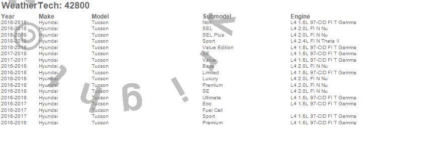 Below is an abbreviated list of applications for the Cargo Liner.Tucson, Hyundai, 2018, 2017, 2016