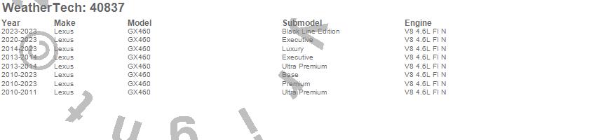 Below is an abbreviated list of applications for the Cargo Liner.GX460, Lexus, 2023, 2022, 2021, 2020, 2019, 2018, 2017, 2016, 2015, 2014, 2013, 2012, 2011, 2010