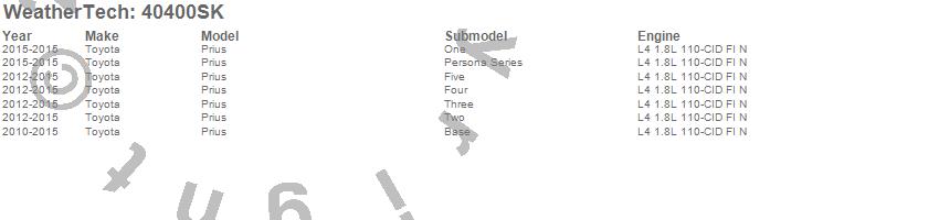 Below is an abbreviated list of applications for the Cargo Liner w/Bumper Protector.Prius, Toyota, 2015, 2014, 2013, 2012, 2011, 2010
