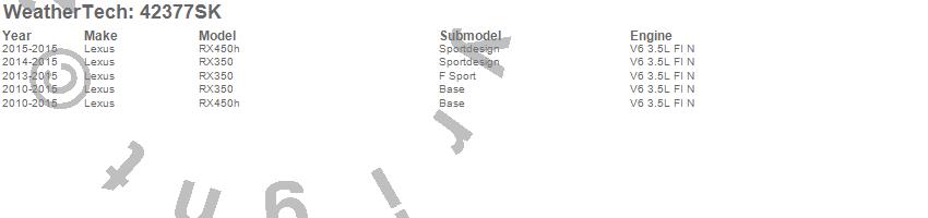 Below is an abbreviated list of applications for the Cargo Liner w/Bumper Protector.RX350, RX450h, Lexus, 2015, 2014, 2013, 2012, 2011, 2010