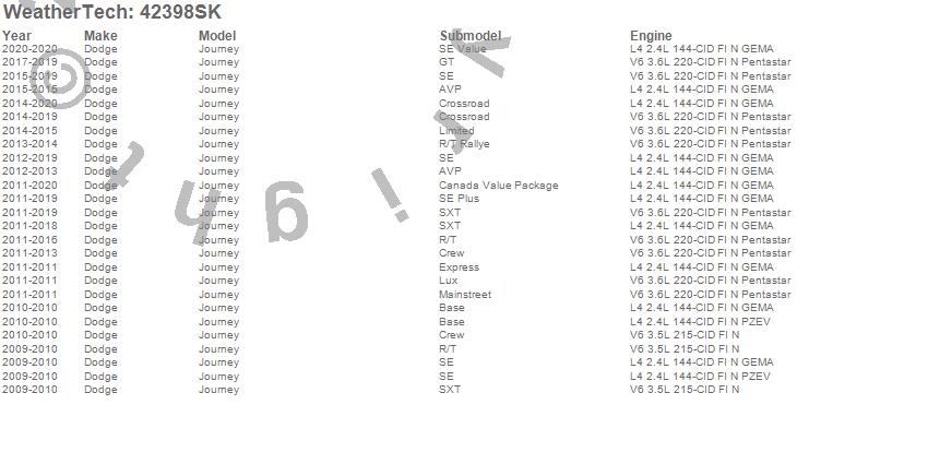 Below is an abbreviated list of applications for the Cargo Liner w/Bumper Protector.Journey, Dodge, 2020, 2019, 2018, 2017, 2016, 2015, 2014, 2013, 2012, 2011, 2010, 2009