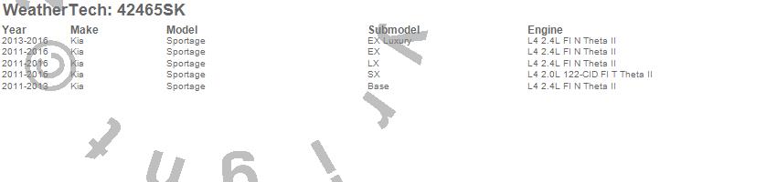 Below is an abbreviated list of applications for the Cargo Liner w/Bumper Protector.Sportage, Kia, 2016, 2015, 2014, 2013, 2012, 2011