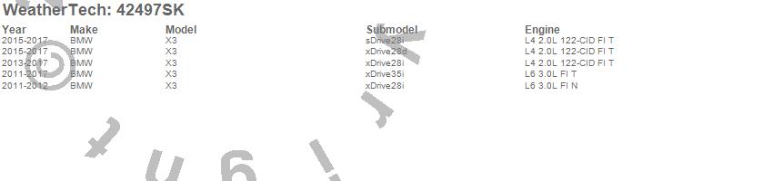 Below is an abbreviated list of applications for the Cargo Liner w/Bumper Protector.X3, BMW, 2017, 2016, 2015, 2014, 2013, 2012, 2011