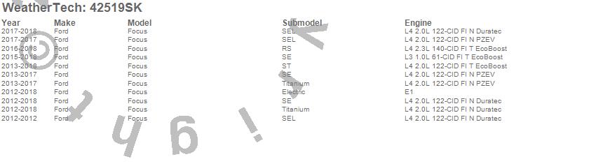 Below is an abbreviated list of applications for the Cargo Liner w/Bumper Protector.Focus, Ford, 2018, 2017, 2016, 2015, 2014, 2013, 2012