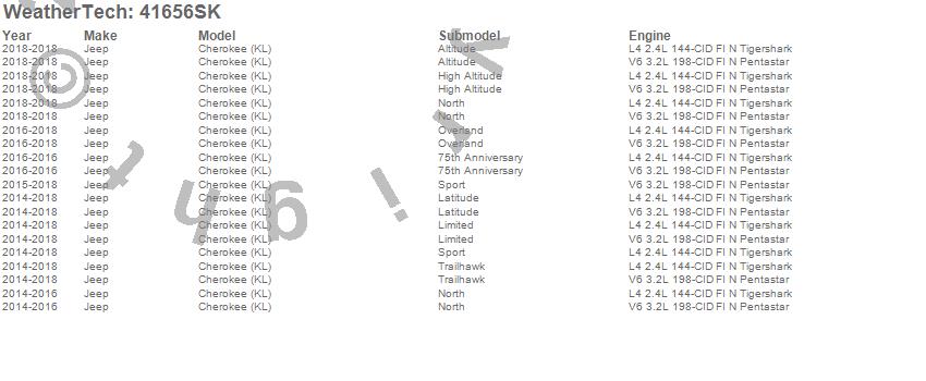 Below is an abbreviated list of applications for the Cargo Liner w/Bumper Protector.Cherokee (KL), Jeep, 2018, 2017, 2016, 2015, 2014
