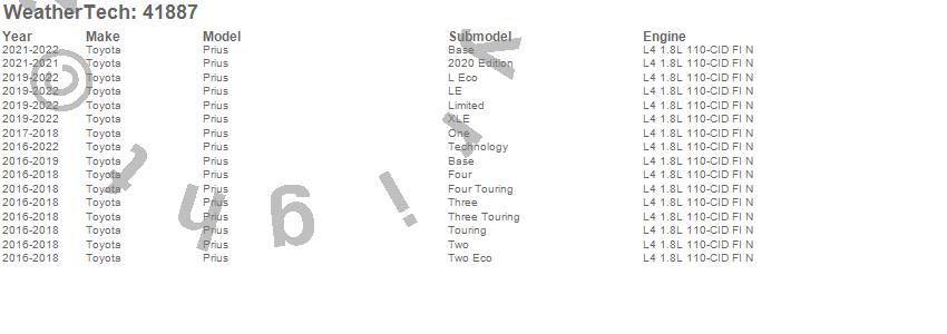 Below is an abbreviated list of applications for the Cargo Liner.Prius, Toyota, 2022, 2021, 2020, 2019, 2018, 2017, 2016