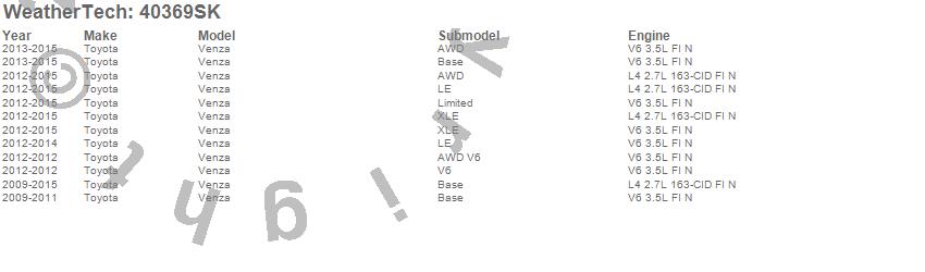 Below is an abbreviated list of applications for the Cargo Liner w/Bumper Protector.Venza, Toyota, 2015, 2014, 2013, 2012, 2011, 2010, 2009