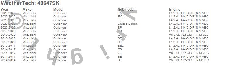 Below is an abbreviated list of applications for the Cargo Liner w/Bumper Protector.Outlander, Mitsubishi, 2020, 2019, 2017, 2016, 2015, 2014
