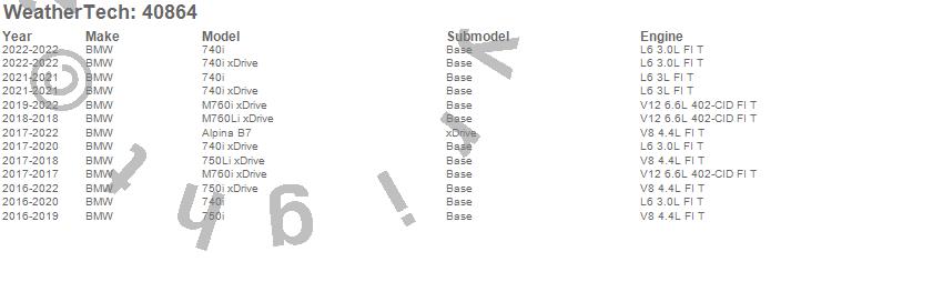 Below is an abbreviated list of applications for the Cargo Liner.740i, 740i xDrive, 750i, 750i xDrive, 750Li xDrive, Alpina B7, M760i xDrive, M760Li xDrive, BMW, 2022, 2021, 2020, 2019, 2018, 2017, 2016