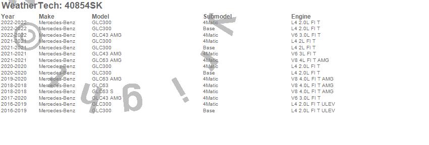 Below is an abbreviated list of applications for the Cargo Liner w/Bumper Protector.GLC300, GLC43 AMG, GLC63, GLC63 AMG, GLC63 S, Mercedes-Benz, 2022, 2021, 2020, 2019, 2018, 2017, 2016
