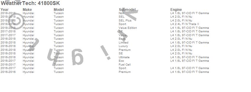 Below is an abbreviated list of applications for the Cargo Liner w/Bumper Protector.Tucson, Hyundai, 2018, 2017, 2016