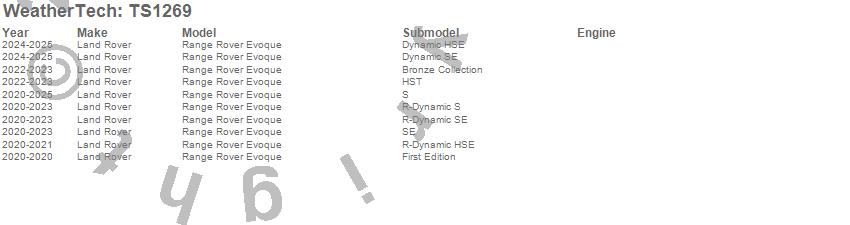Below is an abbreviated list of applications for the WeatherTech SunShade.Range Rover Evoque, Land Rover, 2026, 2025, 2024, 2023, 2022, 2021, 2020