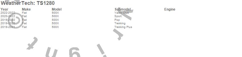Below is an abbreviated list of applications for the WeatherTech SunShade.500X, Fiat, 2022, 2021, 2020, 2019, 2018, 2017, 2016