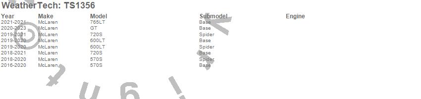 Below is an abbreviated list of applications for the WeatherTech SunShade.570S, 600LT, 720S, 750S, 765LT, GT, McLaren, 2025, 2024, 2023, 2022, 2021, 2020, 2019, 2018, 2017, 2016