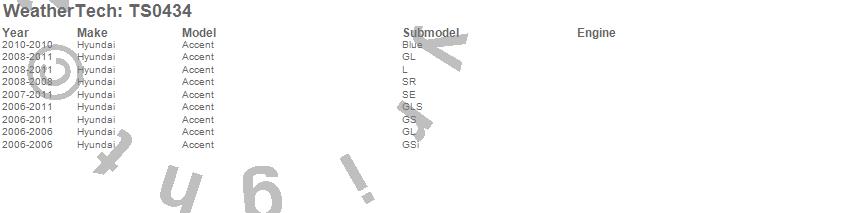 Below is an abbreviated list of applications for the WeatherTech SunShade.Accent, Hyundai, 2011, 2010, 2009, 2008, 2007, 2006