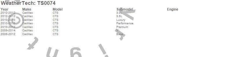 Below is an abbreviated list of applications for the WeatherTech SunShade.CTS, Cadillac, 2014, 2013, 2012, 2011, 2010, 2009, 2008