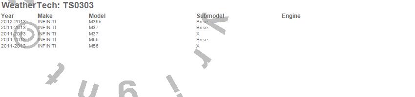 Below is an abbreviated list of applications for the WeatherTech SunShade.M35h, M37, M56, INFINITI, 2013, 2012, 2011