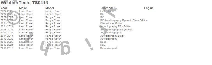 Below is an abbreviated list of applications for the WeatherTech SunShade.Range Rover, Land Rover, 2022, 2021, 2020, 2019, 2018, 2017, 2016, 2015, 2014, 2013