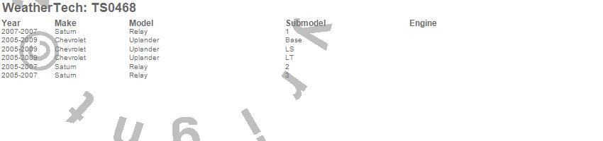 Below is an abbreviated list of applications for the WeatherTech SunShade.Relay, Uplander, Chevrolet, Saturn, 2009, 2008, 2007, 2006, 2005