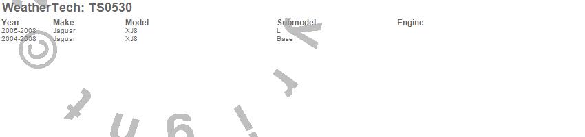Below is an abbreviated list of applications for the WeatherTech SunShade.XJ8, Jaguar, 2008, 2007, 2006, 2005, 2004