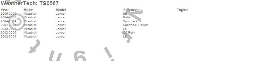Below is an abbreviated list of applications for the WeatherTech SunShade.Lancer, Mitsubishi, 2007, 2006, 2005, 2004, 2003, 2002