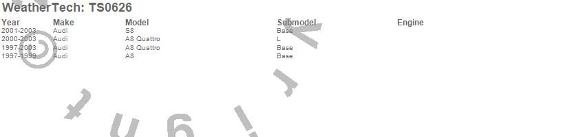 Below is an abbreviated list of applications for the WeatherTech SunShade.A8, A8 Quattro, S8, Audi, 2003, 2002, 2001, 2000, 1999, 1998, 1997