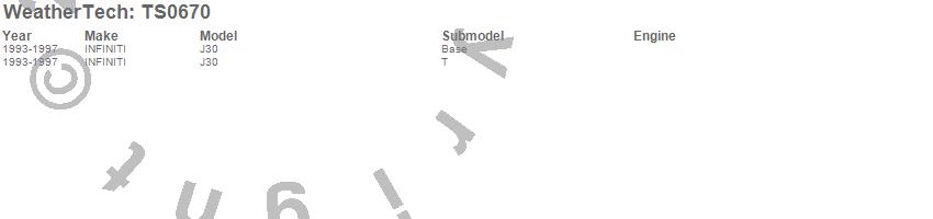 Below is an abbreviated list of applications for the WeatherTech SunShade.J30, INFINITI, 1997, 1996, 1995, 1994, 1993