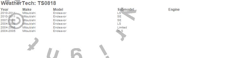 Below is an abbreviated list of applications for the WeatherTech SunShade.Endeavor, Mitsubishi, 2011, 2010, 2008, 2007, 2006, 2005, 2004