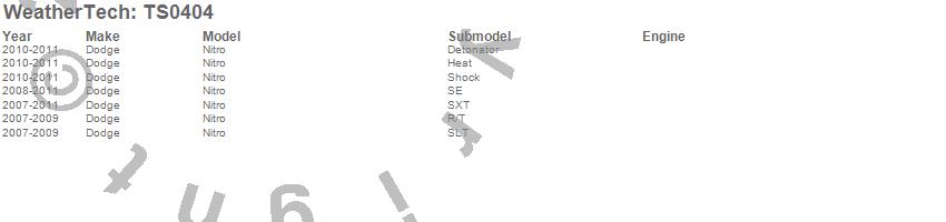 Below is an abbreviated list of applications for the WeatherTech SunShade.Nitro, Dodge, 2011, 2010, 2009, 2008, 2007