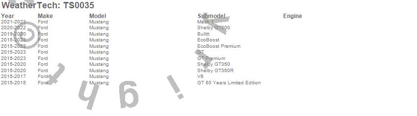 Below is an abbreviated list of applications for the WeatherTech SunShade.Mustang, Ford, 2023, 2022, 2021, 2020, 2019, 2018, 2017, 2016, 2015