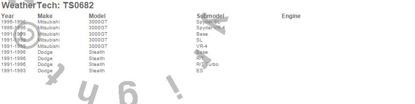Below is an abbreviated list of applications for the WeatherTech SunShade.3000GT, Stealth, Dodge, Mitsubishi, 1999, 1998, 1997, 1996, 1995, 1994, 1993, 1992, 1991