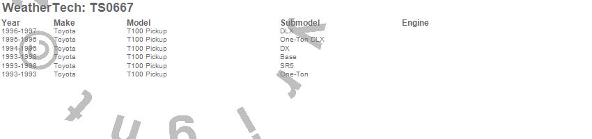 Below is an abbreviated list of applications for the WeatherTech SunShade.T100 Pickup, Toyota, 1998, 1997, 1996, 1995, 1994, 1993