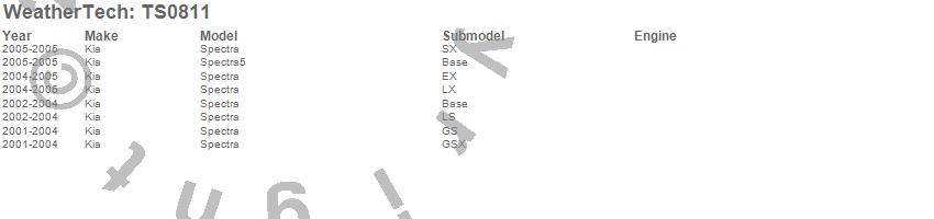 Below is an abbreviated list of applications for the WeatherTech SunShade.Spectra, Spectra5, Kia, 2005, 2004, 2003, 2002, 2001