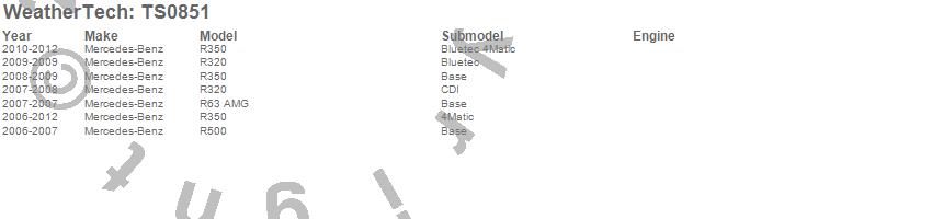 Below is an abbreviated list of applications for the WeatherTech SunShade.R320, R350, R500, R63 AMG, Mercedes-Benz, 2012, 2011, 2010, 2009, 2008, 2007, 2006
