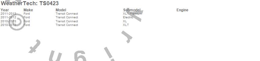 Below is an abbreviated list of applications for the WeatherTech SunShade.Transit Connect, Ford, 2013, 2012, 2011, 2010